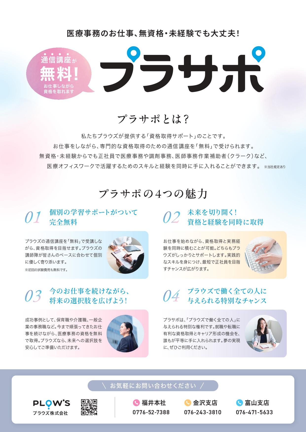 ご希望者には私たちプラウズが提供する資格取得サポート「プラサポ」で、